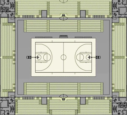 За баскетболните срещи в новата зала е предвидено да има 3 560 седящи места. От тях 2 538 ще бъдат стационарни, а 994 - подвижни. Предвидени са и 28 места за хора с увреждания. Новата зала ще разполага с четири зрителски трибуни, от всички страни на игралното поле. Тези по дължина е предвидено да бъдат с девет реда и още седем подвижни. Зад двата коша ще са разположени зрителски трибуни с осем реда.